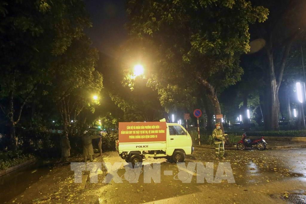 Lực lượng chức năng có mặt kịp thời hướng dẫn các phương tiện di chuyển đi hướng khác do có cây đổ. Ảnh: Tuấn Đức - TTXVN