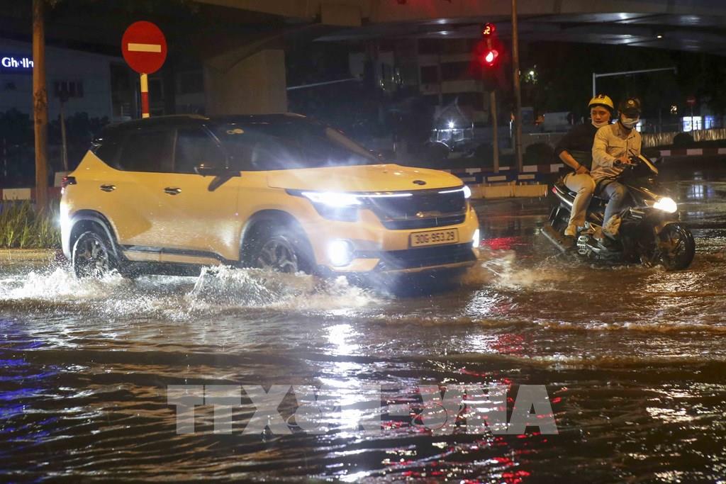 Mưa lớn khiến một số tuyến phố của Thủ đô bị ngập. Ảnh: Tuấn Đức - TTXVN