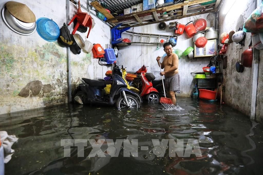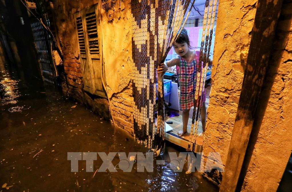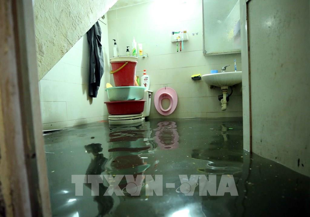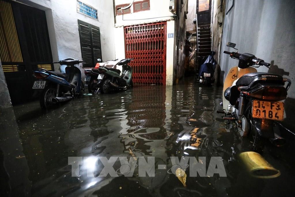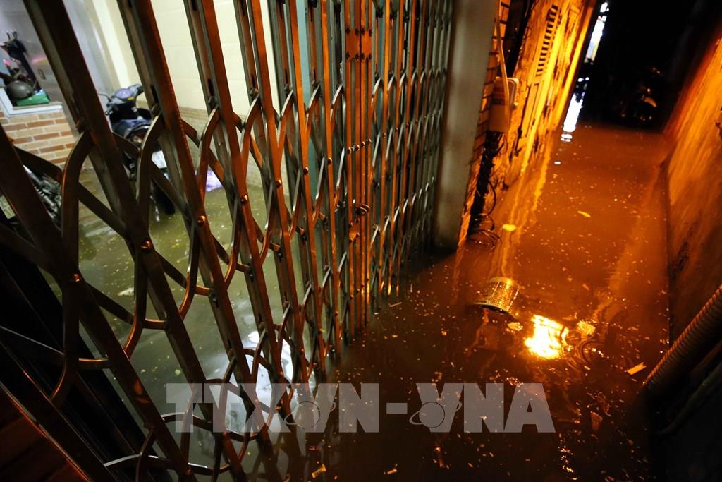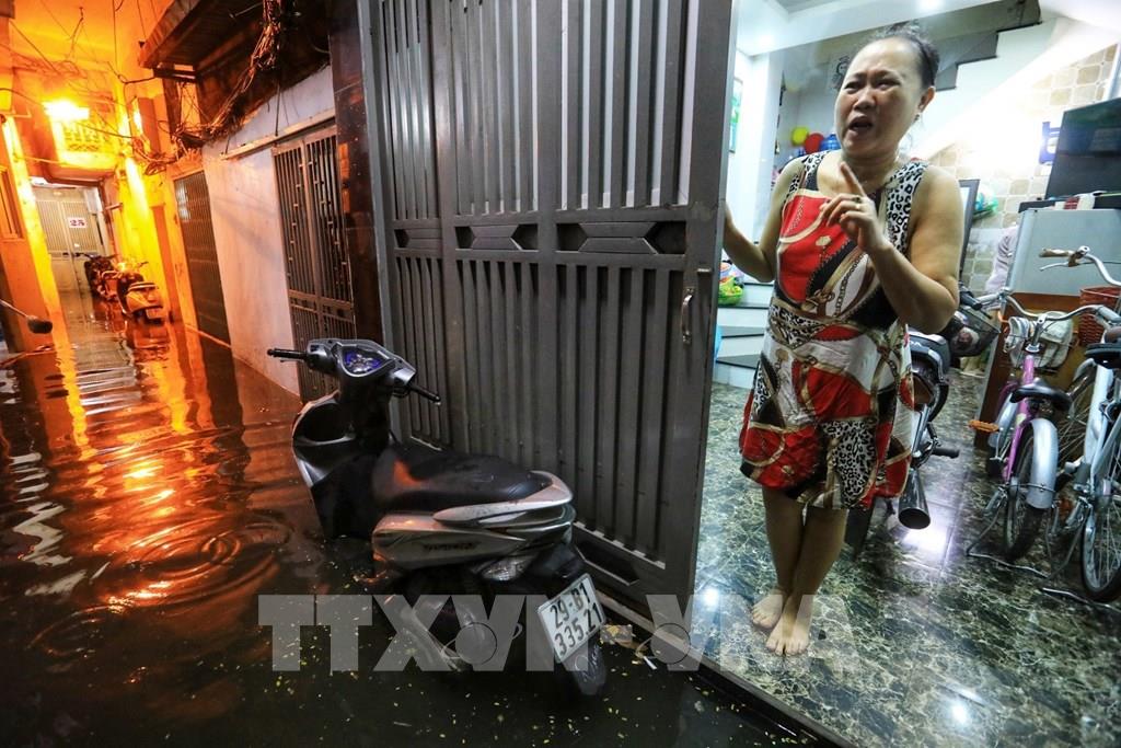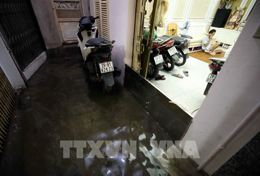1 hộ gia đình ngõ 90, phố Đội Cấn (Hà Nội) bị ngập sau cơn mưa lớn tối 22/6. Ảnh: Thành Đạt - TTXVN