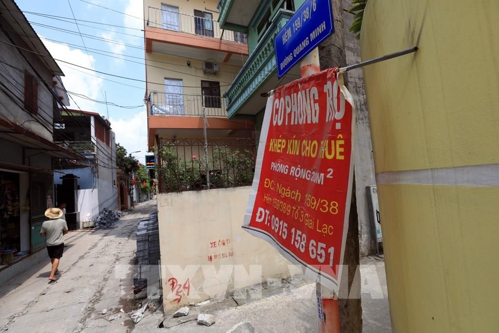 Những tấm biển thông báo cho thuê phòng trọ được dựng lên ở khắp nơi trong thị trấn Quang Minh. Ảnh: Phan Tuấn Anh - TTXVN