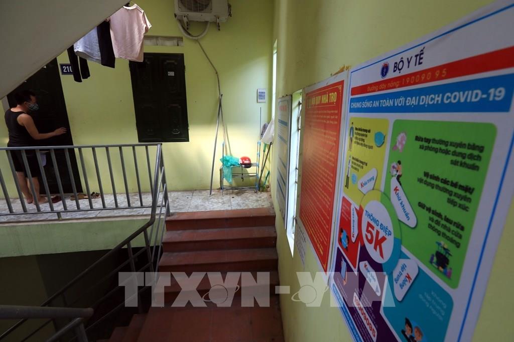 Tại các khu nhà trọ công nhân, công tác tuyên truyền phòng, chống dịch COVID-19 vẫn luôn được đảm bảo. Ảnh: Phan Tuấn Anh - TTXVN