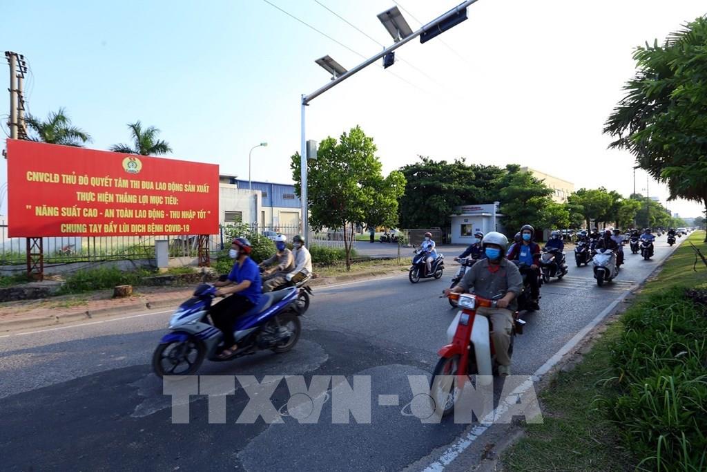 Giờ tan ca của công nhân khu công nghiệp Quang Minh. Ảnh: Hoàng Hiếu - TTXVN