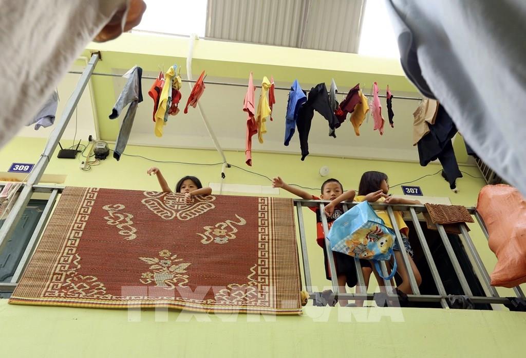 Những đứa trẻ tự chơi trong các dãy nhà trọ trong khi bố mẹ đi làm. Ảnh: Hoàng Hiếu - TTXVN