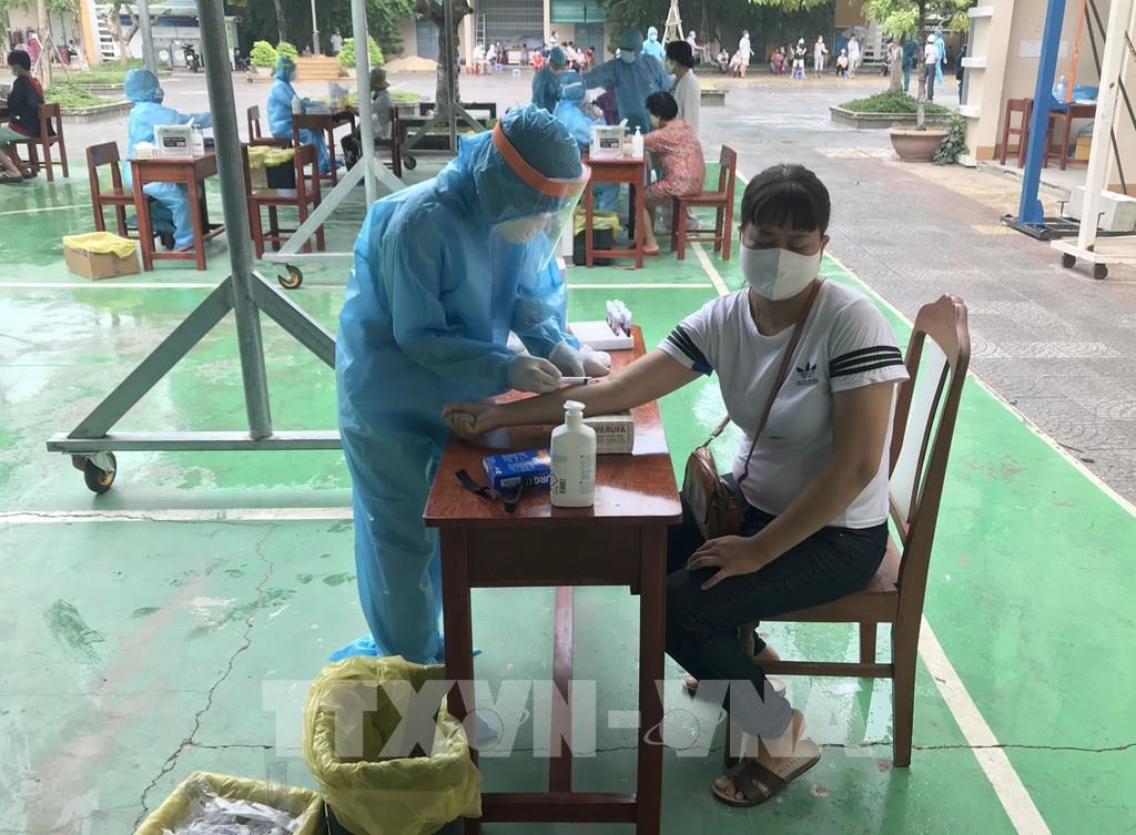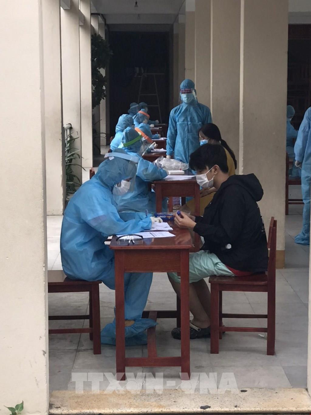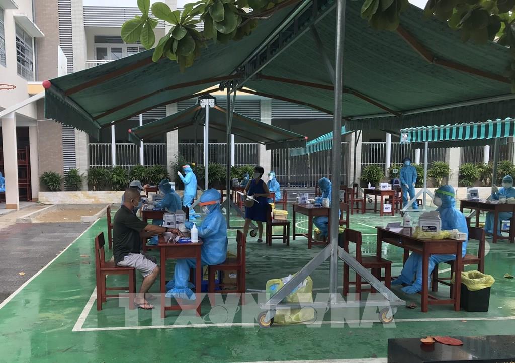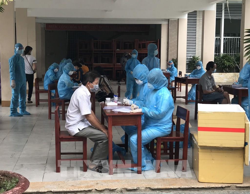 11:11' - 31/07/2020Sáng 31/7/2020, lực lượng phòng, chống dịch tiến hành xét nghiệm COVID-19 cho toàn bộ người dân trong khu vực bị phong tỏa (phường Thạch Thang, quận Hải Châu, Đà Nẵng) tại trường THCS Nguyễn Huệ (đường Quang Trung). Để đảm bảo an toàn phòng chống dịch, người dân trong khu vực phong tỏa xếp hàng cách nhau 2 mét để chờ tới lượt, khai báo thông tin cá nhân, lịch trình di chuyển và lấy mẫu dịch họng, mẫu máu để xét nghiệm theo đúng quy định. Dự kiến việc lấy mẫu xét nghiệm sẽ tiến hành trong 1 ngày.