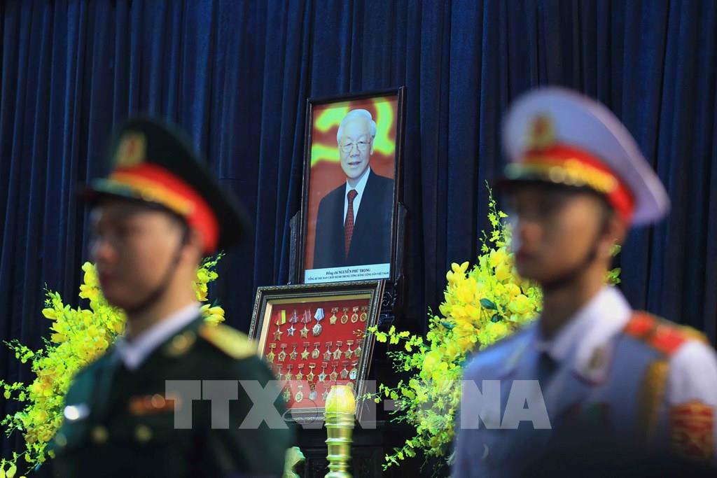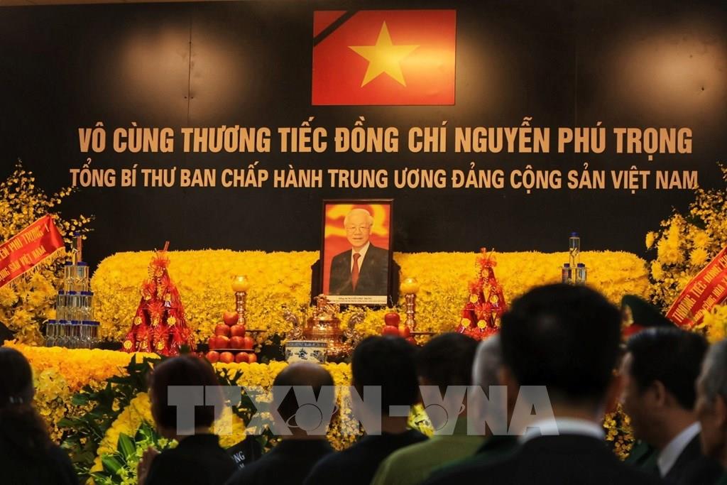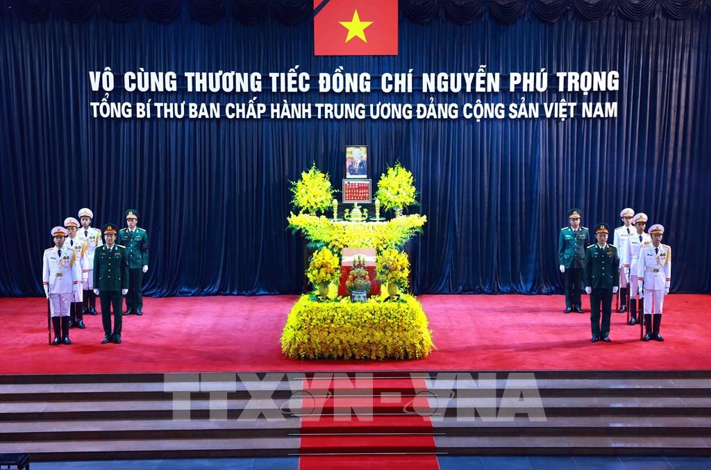 Linh cữu Tổng Bí thư Nguyễn Phú Trọng quàn tại Nhà tang lễ Quốc gia số 5 Trần Thánh Tông, Hà Nội. Ảnh: TTXVN