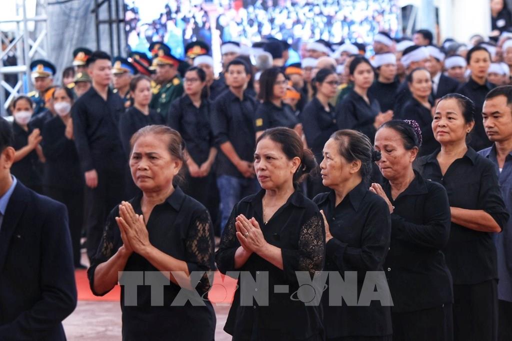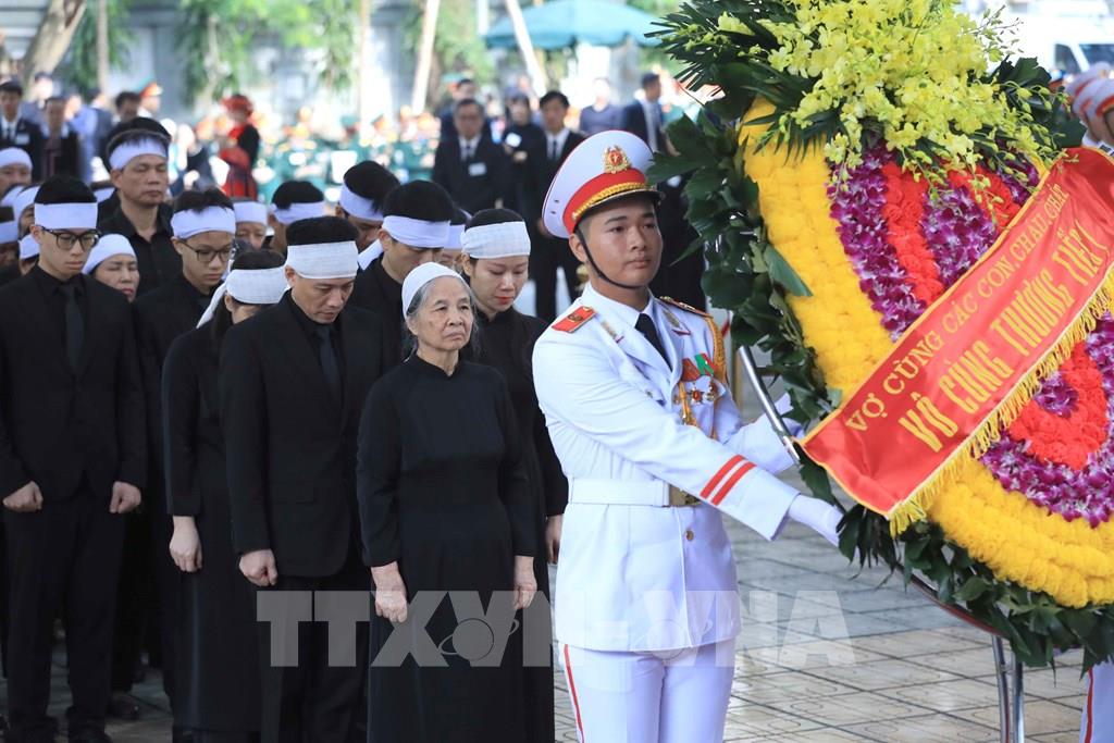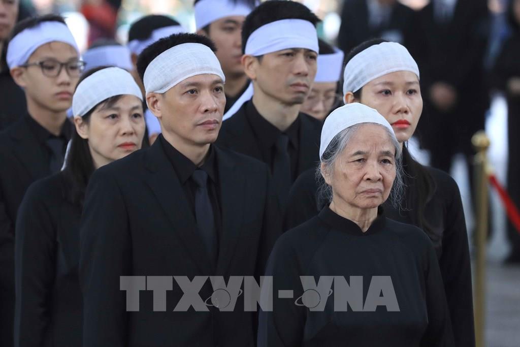 Đoàn gia đình gồm vợ cùng các con, cháu, chắt vào viếng Tổng Bí thư Nguyễn Phú Trọng. Ảnh: TTXVN