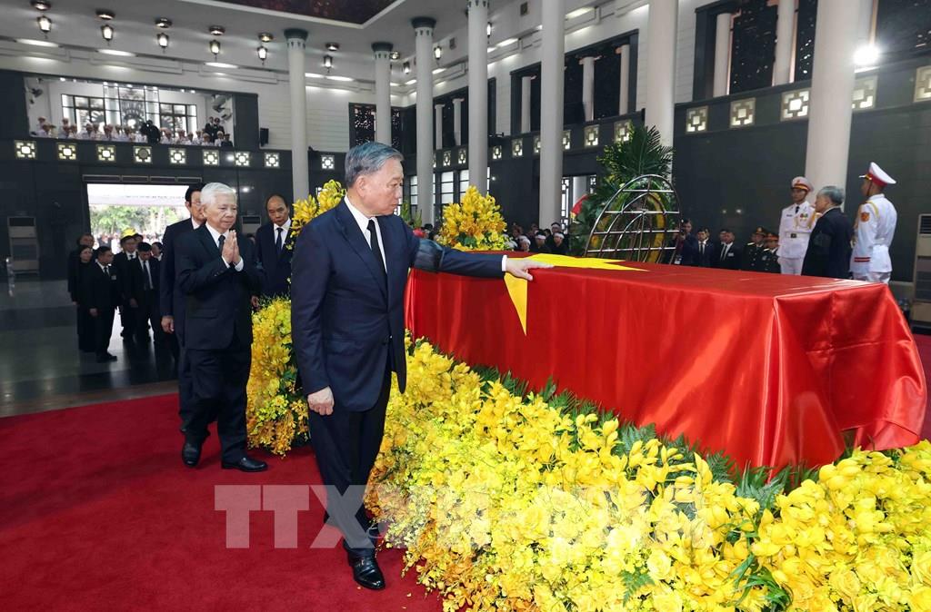 Đoàn Chủ tịch nước do đồng chí Tô Lâm, Ủy viên Bộ Chính trị, Chủ tịch nước làm Trưởng đoàn, kính viếng Tổng Bí thư Nguyễn Phú Trọng. Ảnh: TTXVN