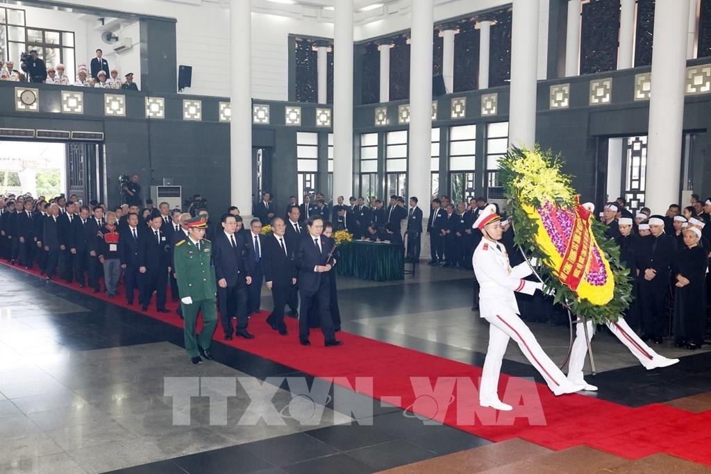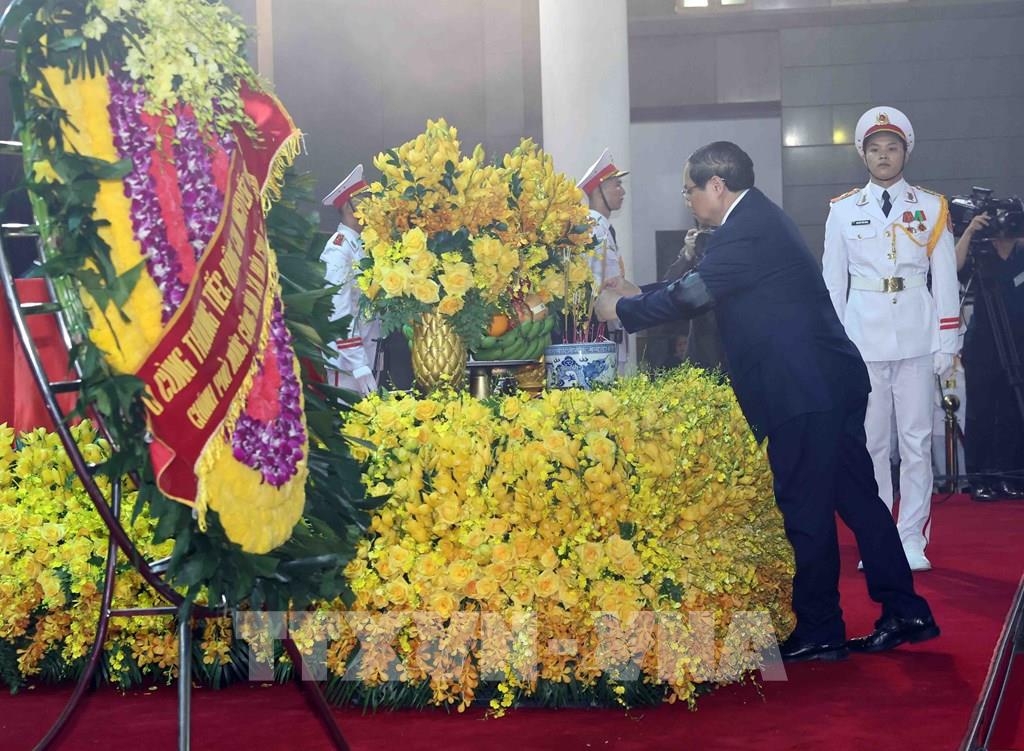 Đoàn Chính phủ do đồng chí Phạm Minh Chính, Ủy viên Bộ Chính trị, Thủ tướng Chính phủ làm Trưởng đoàn, kính viếng Tổng Bí thư Nguyễn Phú Trọng. Ảnh: TTXVN