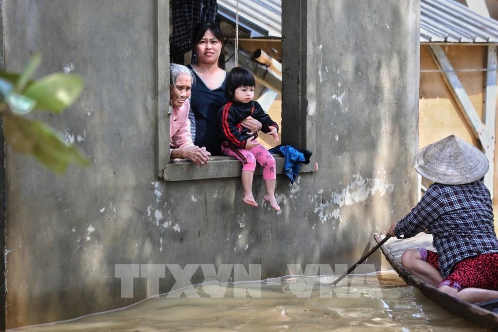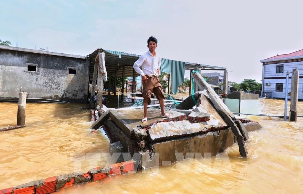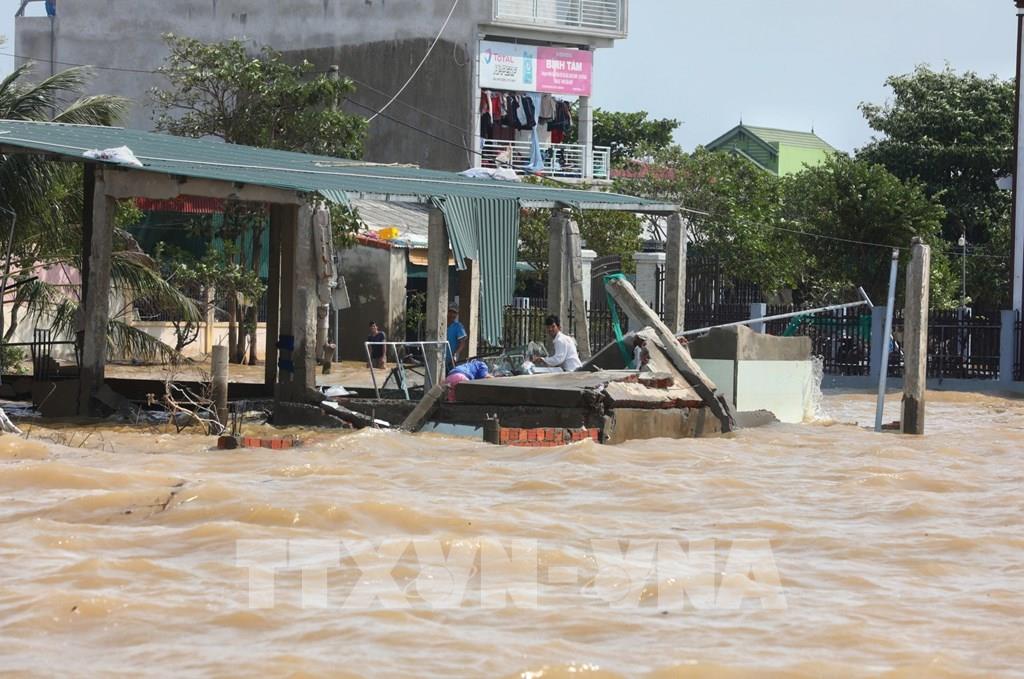 Đây là nơi bị ảnh hưởng nặng nề nhất của đợt lũ vừa qua do lũ lên cao, sóng mạnh, làm sập hơn 300 tường nhà khiến nhiều hộ dân không còn chỗ ở, phải tập trung lại ở những nhà còn đảm bảo an toàn. Ảnh: Thành Đạt - TTXVN