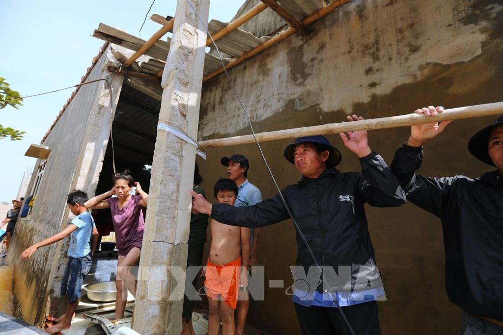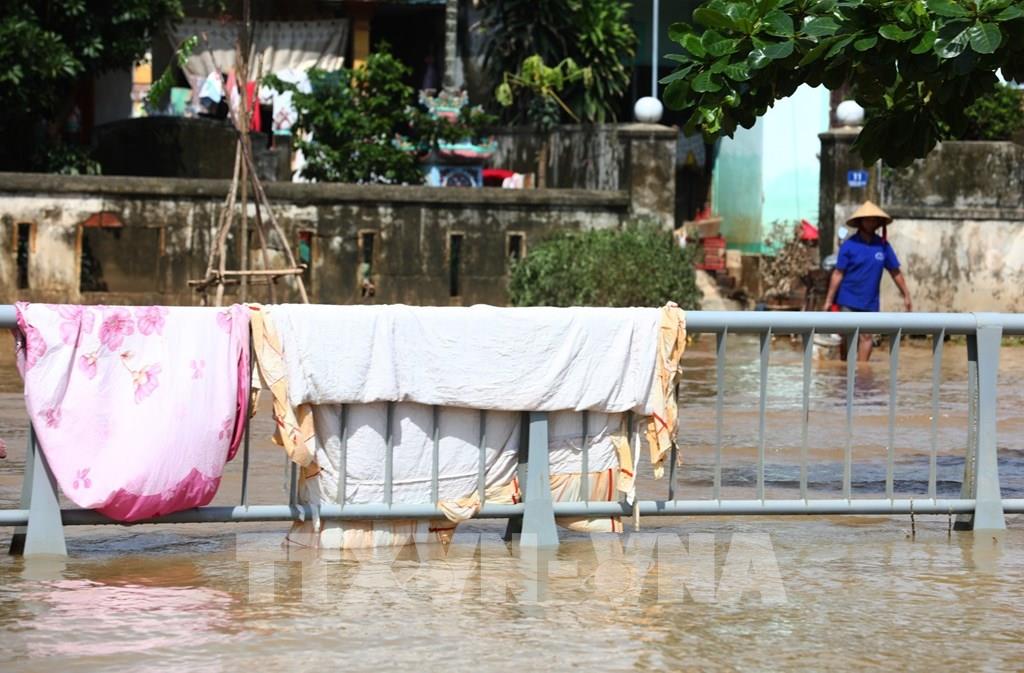 Một số nơi tại Lệ Thủy nước, người dân tranh thủ trời nắng vệ sinh, dọn dẹp nhà cửa. Ảnh: Thành Đạt - TTXVN