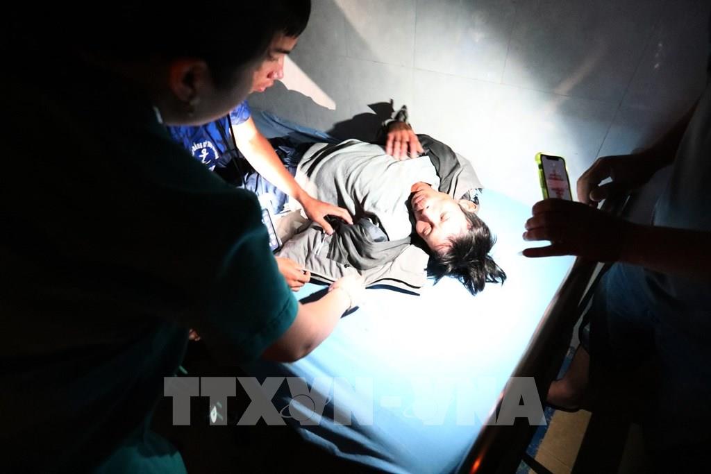 Đêm 22/10/2020, trong khi đi kiểm tra tình hình giao thông để phục vụ cho công tác cứu hộ, cứu nạn người dân vùng lũ, công an huyện Lệ Thủy đã kịp thời di chuyển anh Nguyễn Quang Cư ở thôn Đông Thành, xã Liên Thủy bị chấn thương nặng đi cấp cứu kịp thời tại bệnh viện đa khoa huyện. Ảnh: Thành Đạt - TTXVN