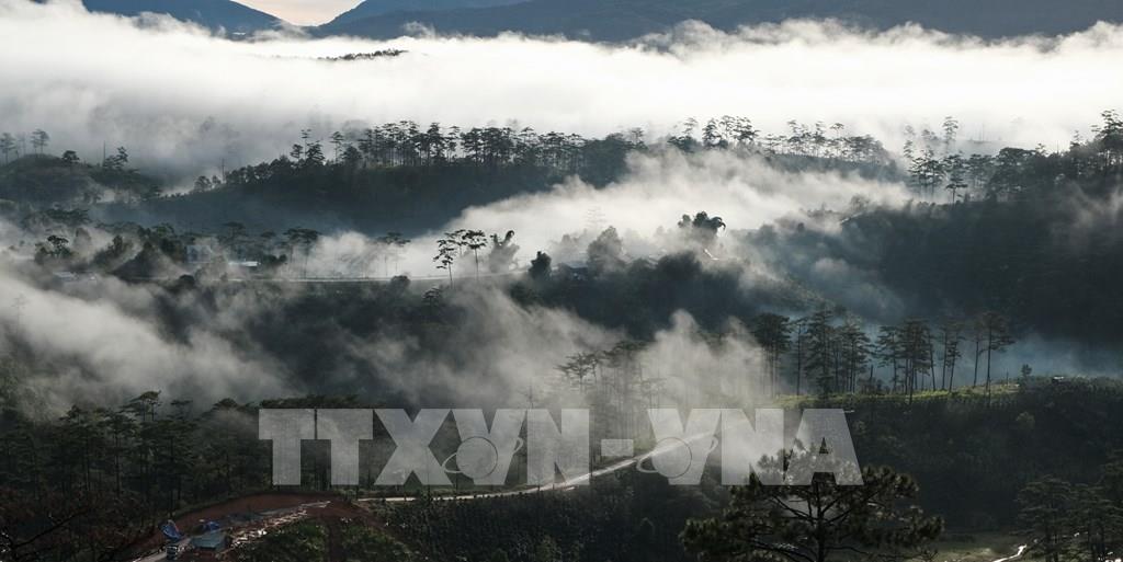 Đà Lạt được bao quanh bởi những cánh rừng với mây mù bao phủ và cũng trở thành sản phẩm du lịch “săn mây” rất hấp dẫn du khách trong những năm gần đây. Ảnh (tư liệu): Quốc Dũng-TTXVN