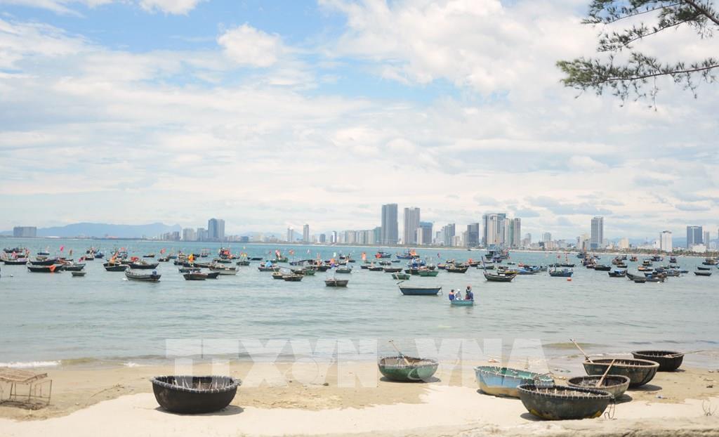 Bãi biển Mân Thái (phường Thọ Quang, quận Sơn Trà) nơi nhiều thuyền chài neo đậu. Ảnh: Văn Dũng-TTXVN
