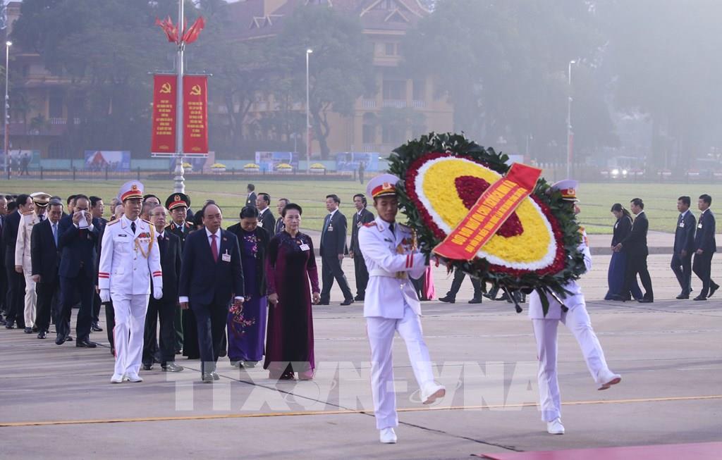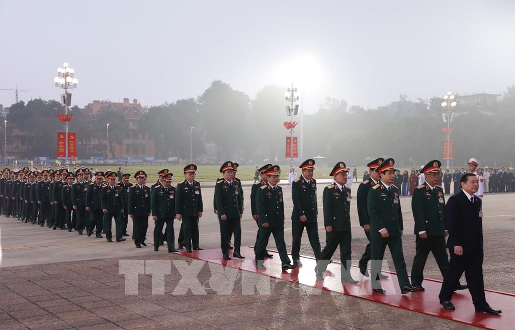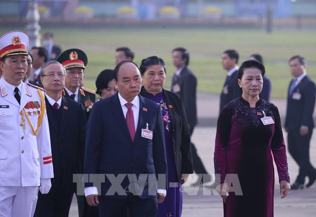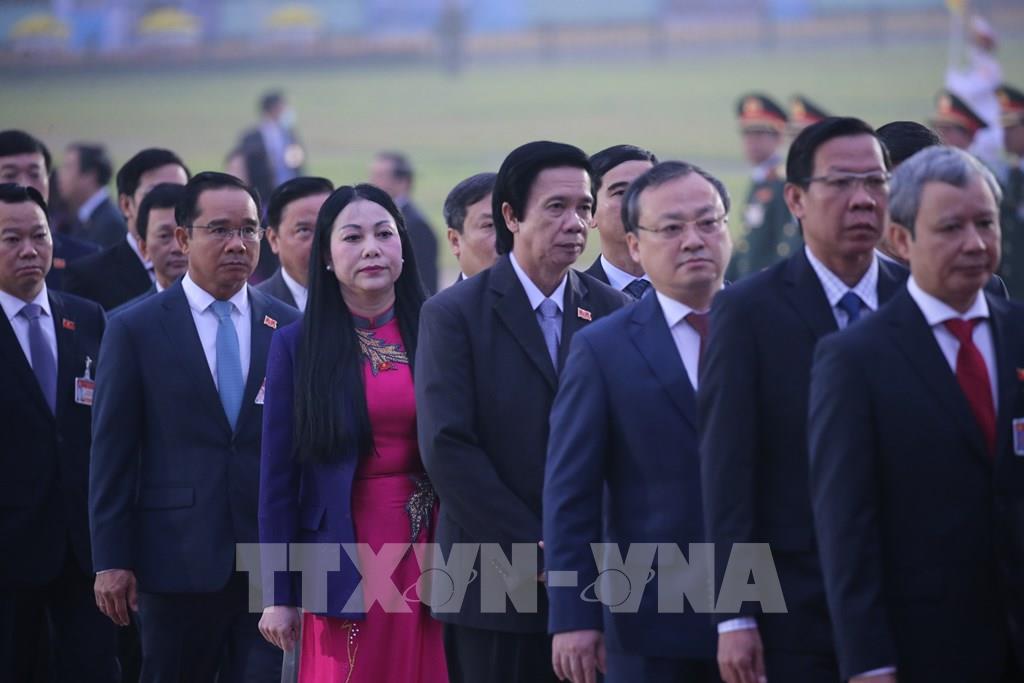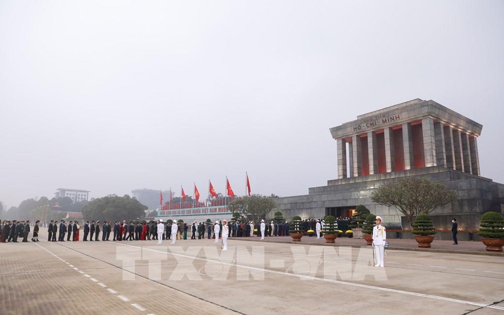 Các đại biểu dự Đại hội XIII của Đảng đặt vòng hoa và vào Lăng viếng Chủ tịch Hồ Chí Minh. Ảnh: Dương Giang-TTXVN