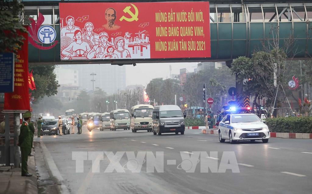 Đại biểu tới Trung tâm Hội nghị Quốc gia dự phiên họp trù bị Đại hội XIII của Đảng
