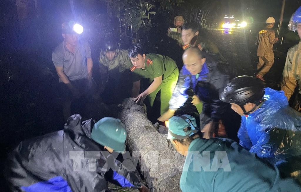 Lực lượng chức năng kịp thời khắc phục hậu quả thiên tai. Ảnh: TTXVN phát