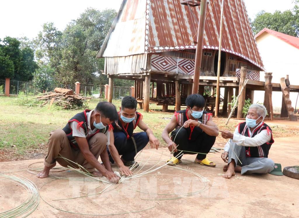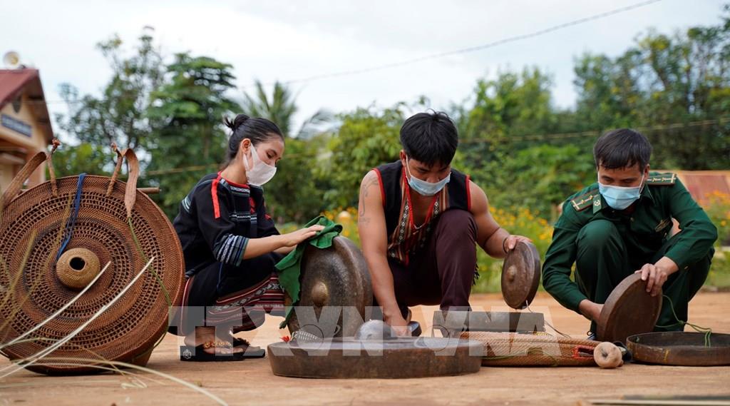14:27' - 02/12/2021Vào dịp cuối năm, người dân tộc Jrai vùng biên giới xã Ia O (Ia Grai, Gia Lai) lại tất bật chuẩn bị những tiệc cúng mừng, đặc biệt là may áo cho cồng, chiêng. Cồng, chiêng được coi là một trong những tài sản quý của cộng đồng người dân tộc thiểu số tại Tây Nguyên cả về giá trị vật chất lẫn tinh thần. Việc thiết kế đan áo cho các bộ cồng, chiêng giúp bảo quản cho những bộ cồng chiêng và góp phần trong công tác bảo tồn giá trị văn hóa truyền thống của dân tộc thiểu số tại Tây Nguyên.