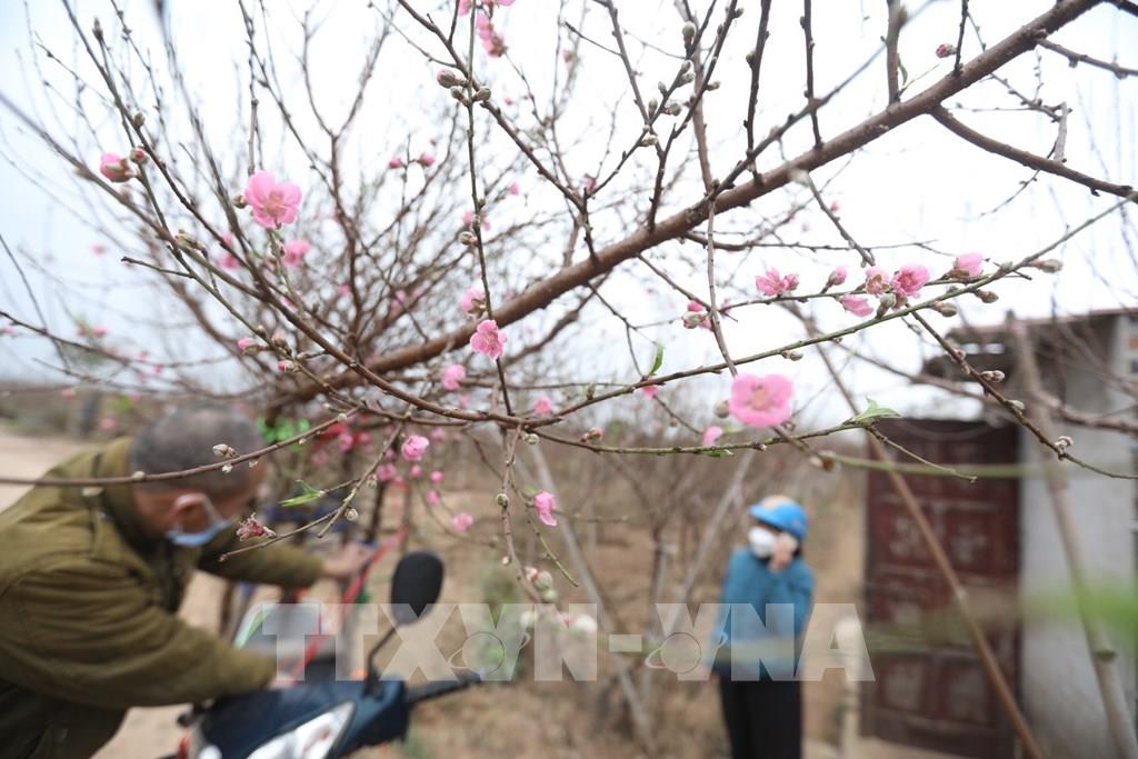 Hoa đào bung nở dịp cận kề tết. Ảnh: Tuấn Anh - TTXVN