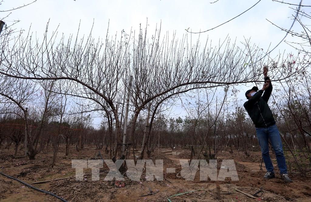 Những cành đào to được các chủ vườn chăm sóc rất kỹ. Ảnh: Tuấn Anh - TTXVN