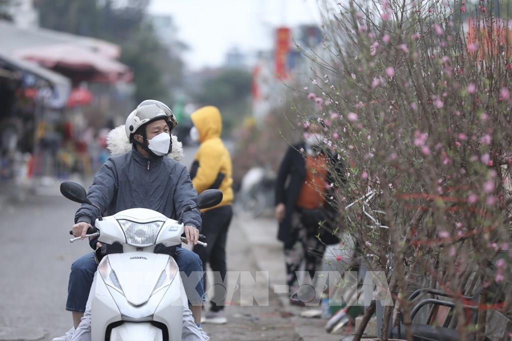 Tại khu vực chợ hoa Quảng Bá (quận Tây Hồ), nhiều hộ đã bán đào phục vụ khách. Ảnh: Minh Quyết - TTXVN