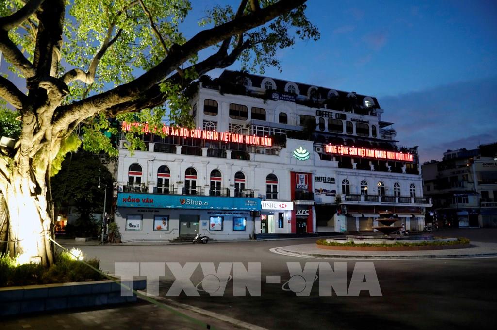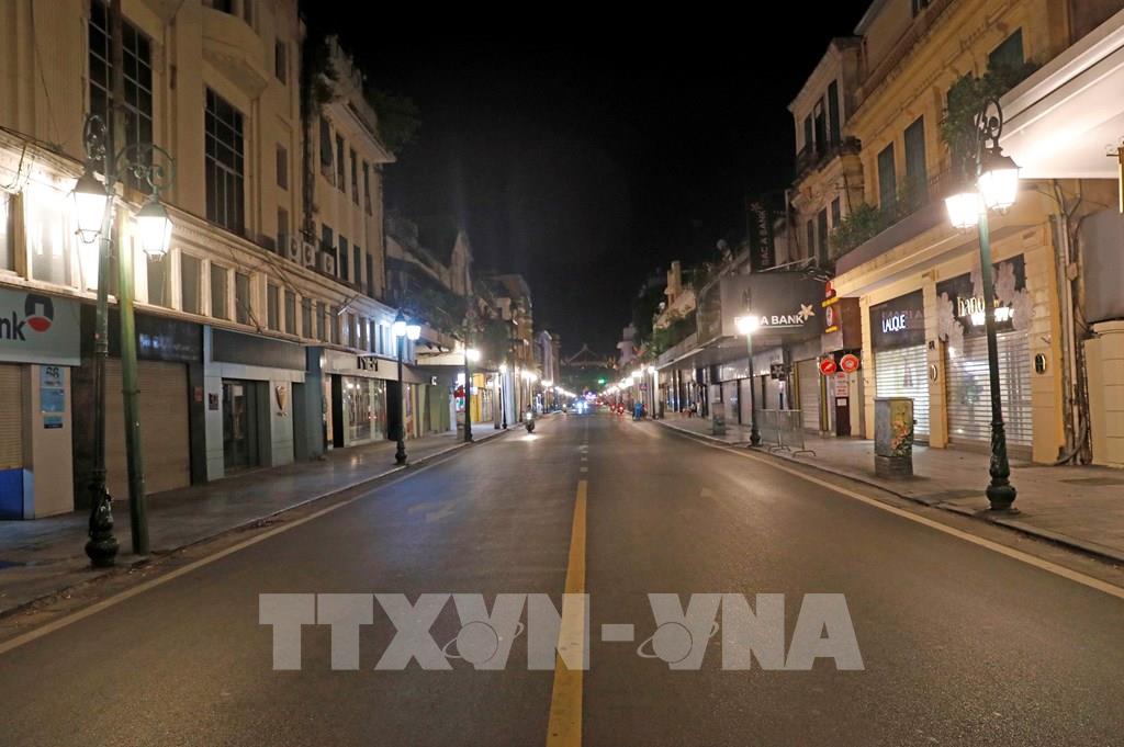 Góc phố Tràng Tiền – Ngô Quyền lúc 19h30. Ảnh: Trần Việt - TTXVN