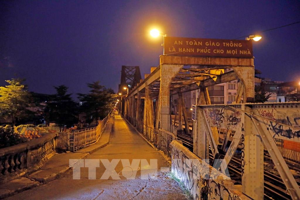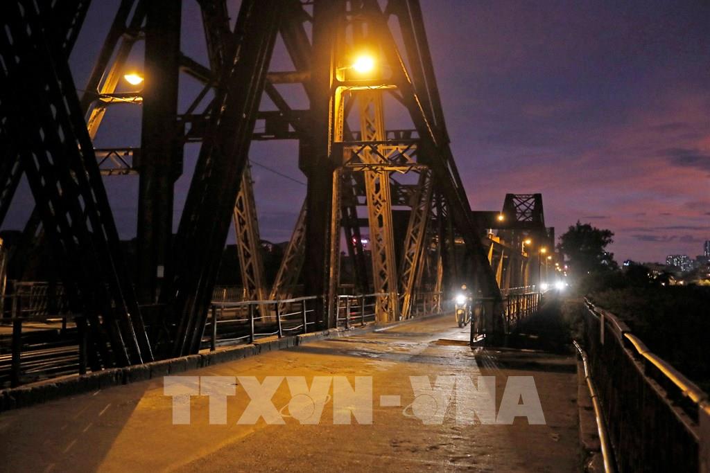 Cầu Long Biên trăm tuổi lúc hơn 19h. Ảnh: Trần Việt - TTXVN