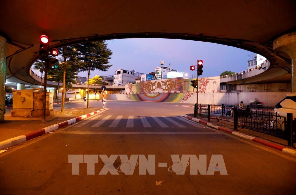 Các ngả đường và vòng xoay cầu Chương Dương không còn cảnh tấp nập thường thấy. Ảnh: Trần Việt - TTXVN