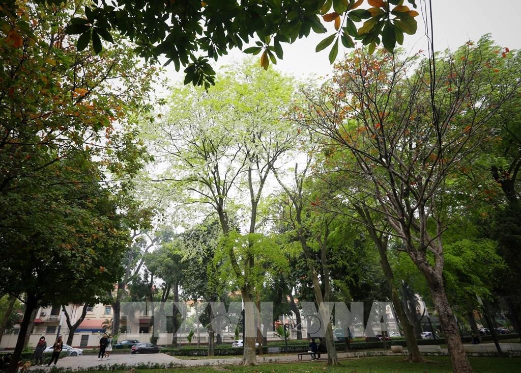 Hoa sưa nở trắng rực rỡ tại Vườn hoa Lenin. Ảnh: Tuấn Đức - TTXVN