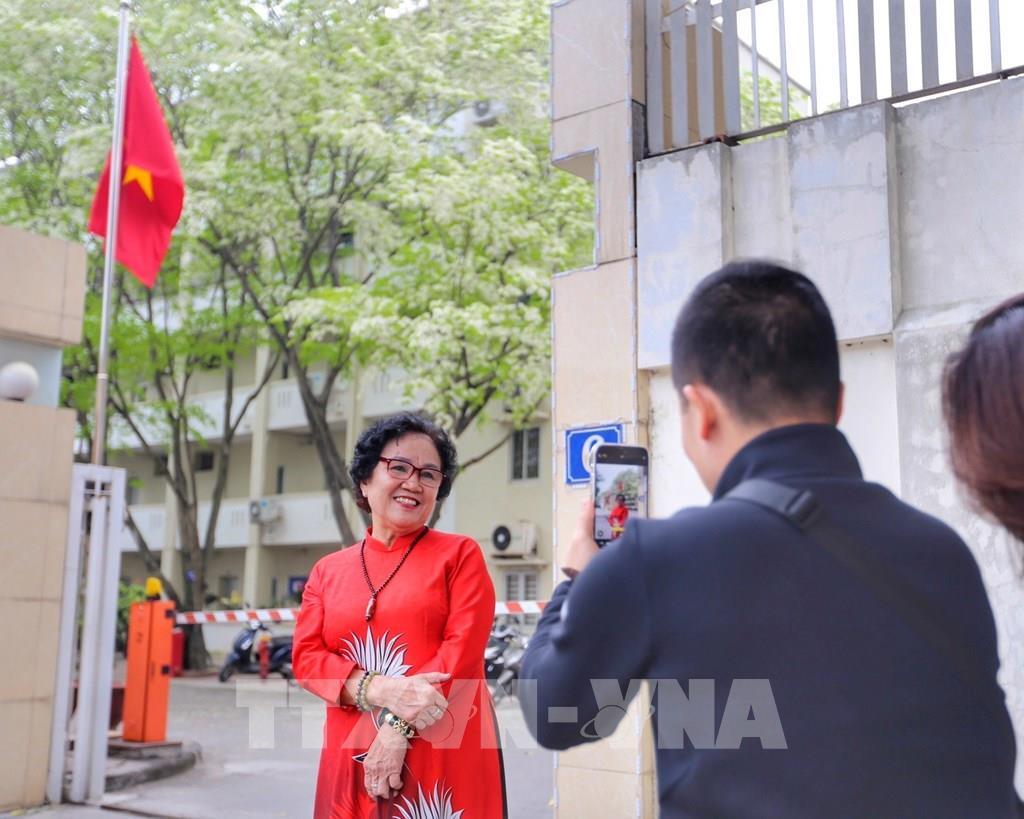 Người dân chụp ảnh lưu niệm với hoa sưa. Ảnh: Tuấn Đức - TTXVN