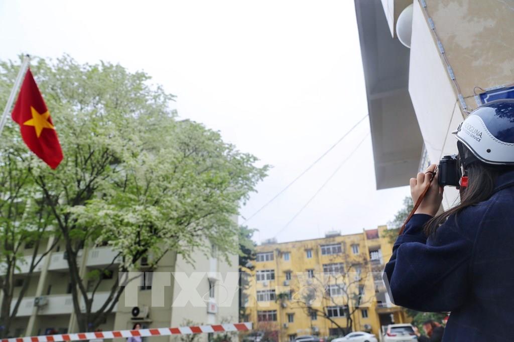 Những cánh hoa sưa mỏng manh đua nhau bung nở trắng một góc trời Thủ đô. Ảnh: Tuấn Đức - TTXVN