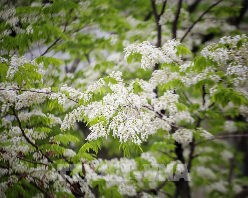Những cánh hoa sưa mỏng manh đua nhau bung nở trắng trời Thủ đô. Ảnh: Tuấn Đức - TTXVN
