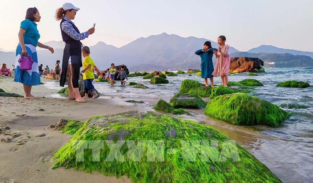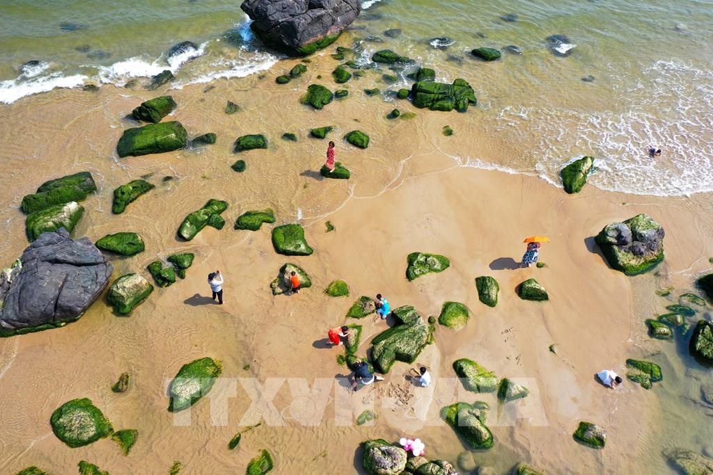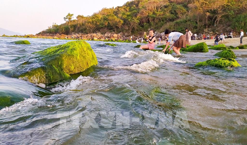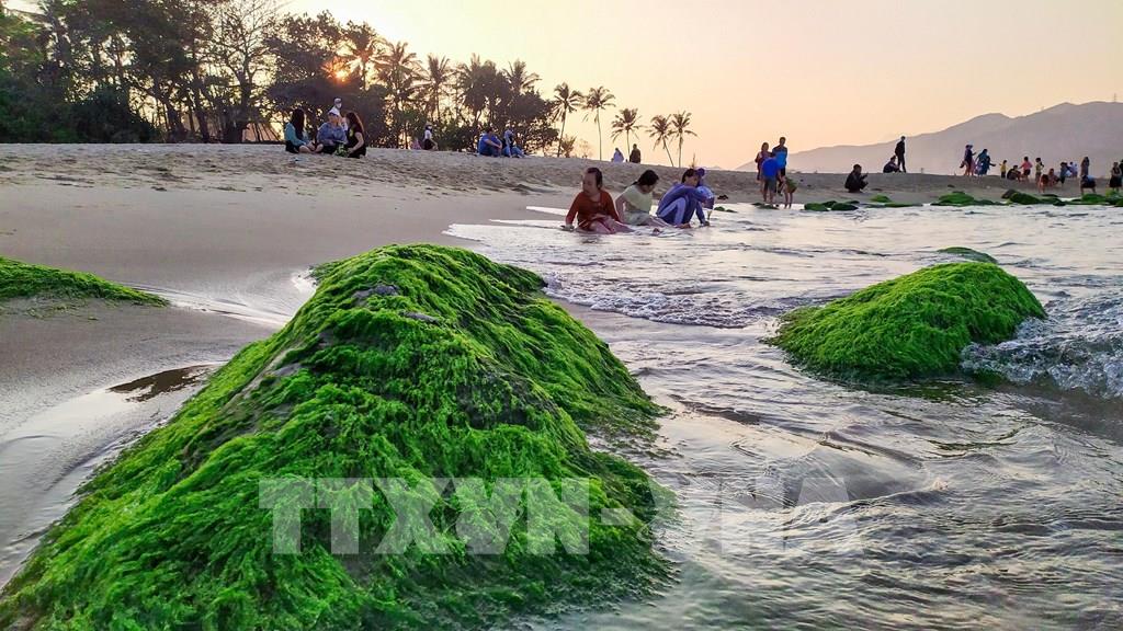 08:53' - 22/02/2021Đến bãi đá ở rạn Nam Ô, phường Hòa Hiệp Nam, quận Liên Chiêủ, TP. Đà Nẵng vào mùa xuân, du khách không khỏi ngỡ ngàng khi được chiêm ngưỡng một khung cảnh thiên nhiên đẹp lạ với những tảng đá được bao phủ bởi một lớp rêu xanh mướt. Thời khắc này chỉ xuất hiện khi thủy triều rút xuống để lộ ra những tảng đá lớn, nhỏ được phủ đầy một lớp rêu xanh tạo nên một cảnh quan đẹp tuyệt vời.