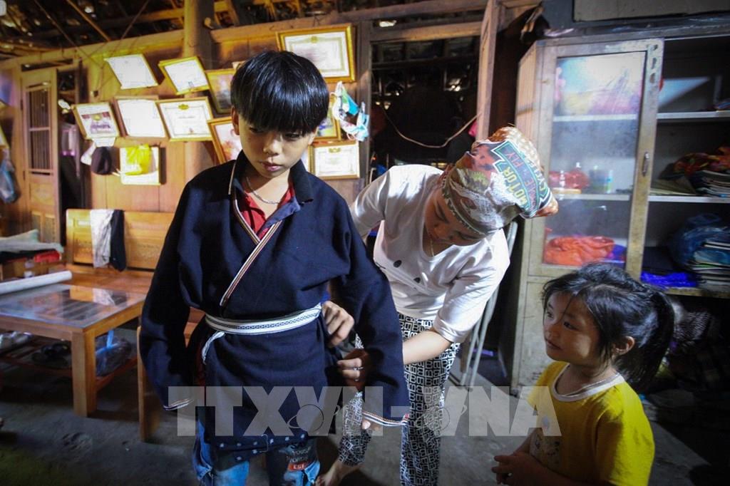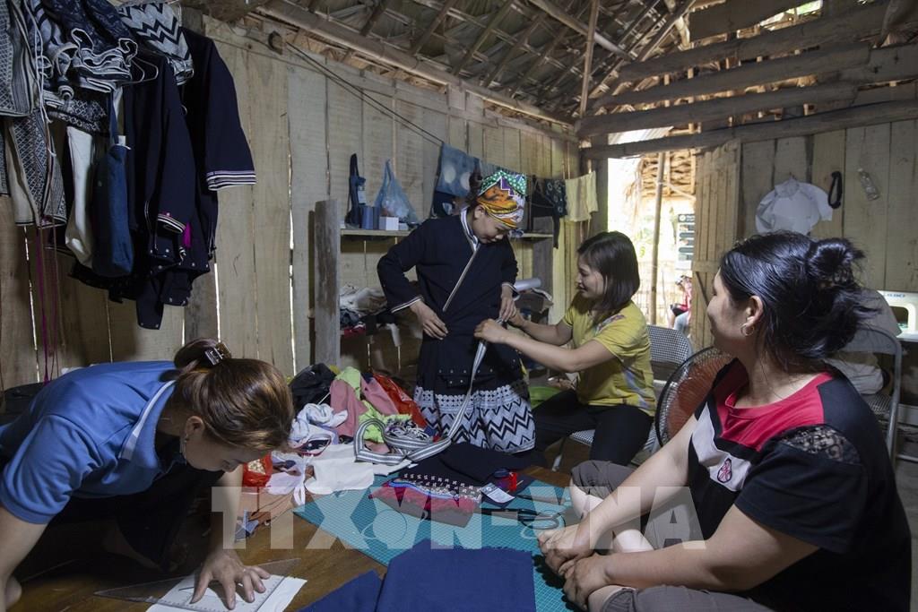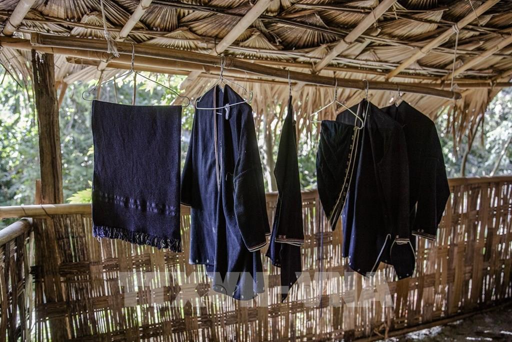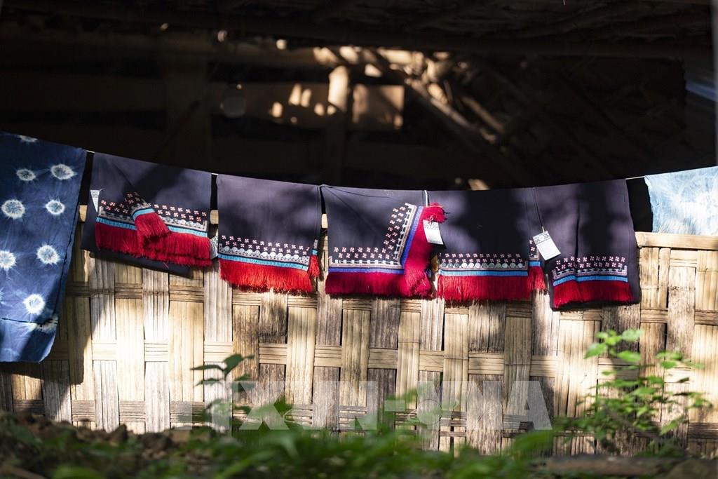 Những bộ trang phục sau khi hoàn thành sẽ được người Dao Tiền ở bản Sưng mặc trong những ngày lễ tết và trong sinh hoạt hàng ngày. Ảnh: Trọng Đạt - TTXVN