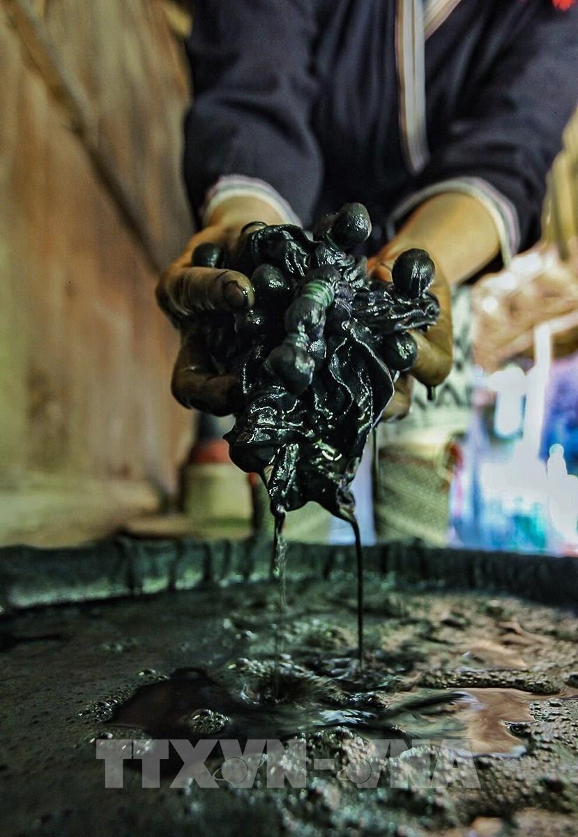 Công đoạn nhuộm chàm cho vải thổ cẩm. Ảnh: Trọng Đạt - TTXVN