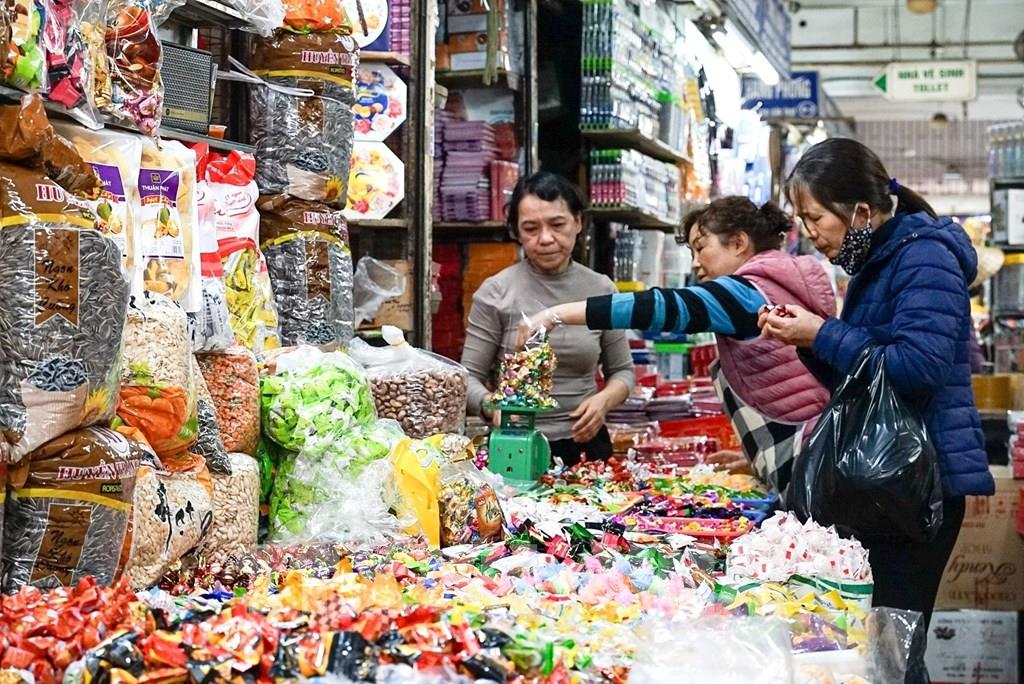 Người dân mua sắm tại chợ Đồng Xuân (Hà Nội). Ảnh: Khánh Hoà - TTXVN