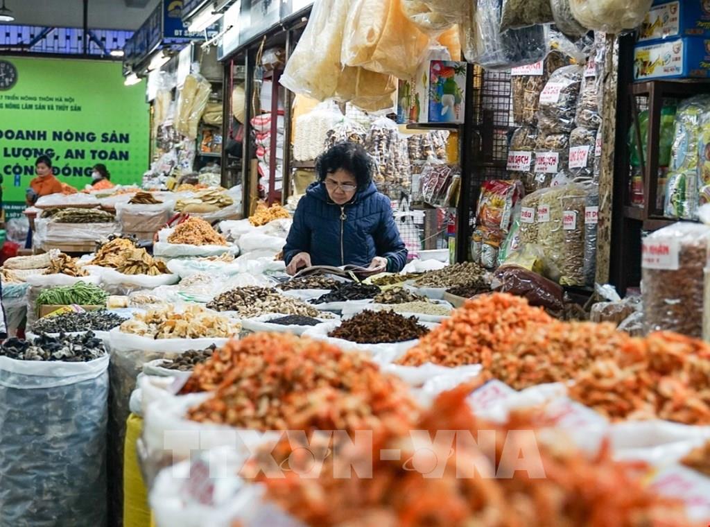 Quầy bán đồ khô trong chợ Đồng Xuân (Hà Nội). Ảnh: Khánh Hoà - TTXVN