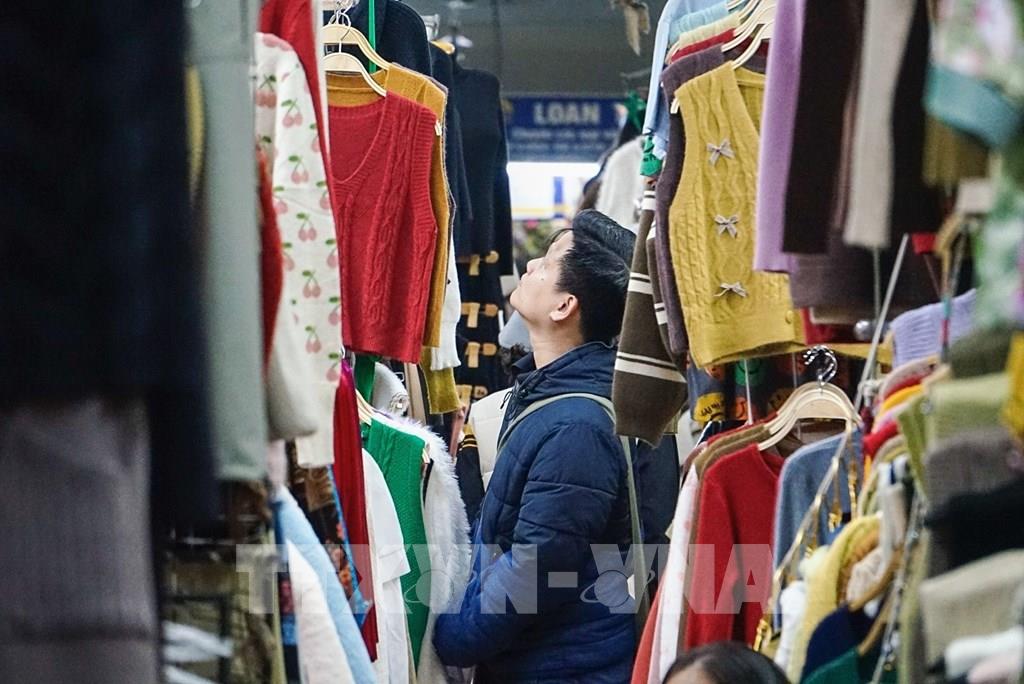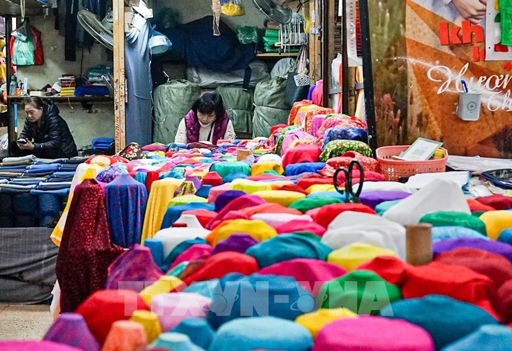 Gian hàng quần áo trong chợ Đồng Xuân (Hà Nội). Ảnh: Khánh Hoà - TTXVN