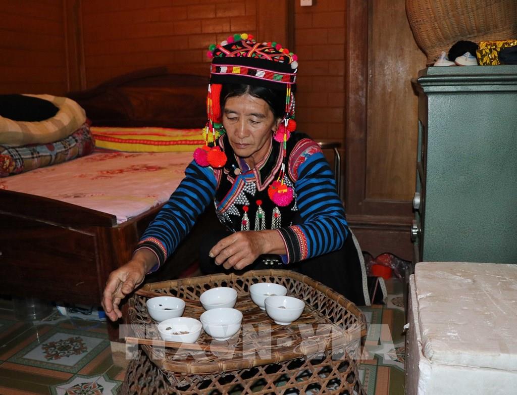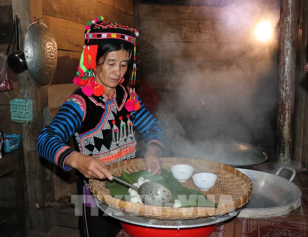 Trong tâm thức của người Hà Nhì, bánh trôi không thể thiếu trong lễ cúng đầu tiên ở mỗi gia đình, bởi đó là món ăn đầu tiên mời tổ tiên khi về dự Tết cùng gia đình. Ảnh: Xuân Tiến – TTXVN