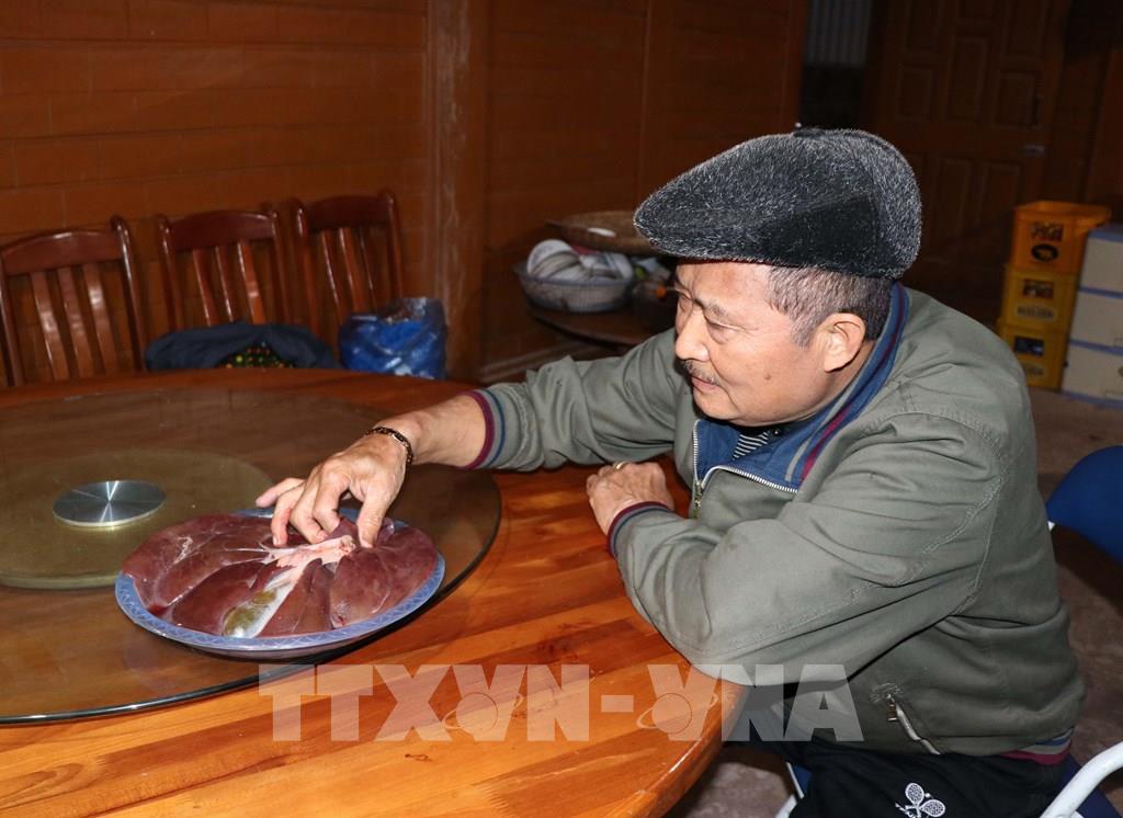Giống như như người Kinh có tục bói chân gà trong dịp tết, tập tục bói gan, mật lợn đã được người Hà Nhì bảo lưu, trao truyền từ bao đời nay trong quá trình thiên di rồi định cư, lập bản ở vùng đất cực Tây của Tổ quốc và trở thành nét đẹp trong văn hóa tâm linh của cộng đồng người Hà Nhì. Ảnh: Xuân Tiến – TTXVN