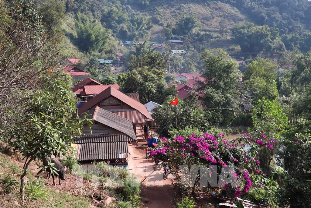 Một góc bản làng Tả Cố Khừ (xã Sín Thầu, huyện Mường Nhé, tỉnh Điện Biên). Để đón Tết cổ truyền, trước đó nhiều ngày, cộng đồng dân bản đã dọn dẹp, trang trí nhà cửa, bản làng thêm sạch đẹp, khang trang. Ảnh: Xuân Tiến – TTXVN