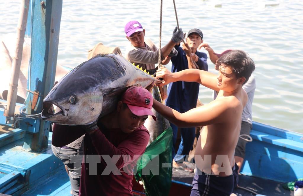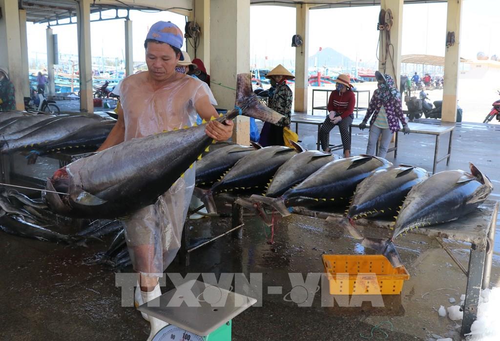 Phú Yên được biết đến là “thủ phủ” nghề câu cá ngừ đại dương với sản lượng cá ngừ khai thác hàng năm khoảng trên 5.000 tấn. Hiện nay, sản phẩm cá ngừ đại dương của Phú Yên đang được xuất khẩu sang các nước thuộc khối EU, Hoa Kỳ, Nhật Bản. Ảnh: Phạm Cường - TTXVN