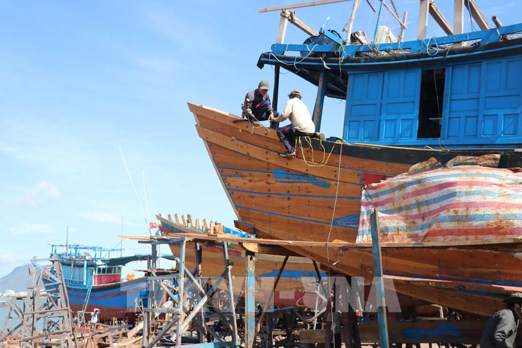Đóng mới, cải hoán tàu cá phục vụ khai thác thủy sản ở vùng khơi cho ngư dân Phú Yên. Ảnh: Phạm Cường - TTXVN