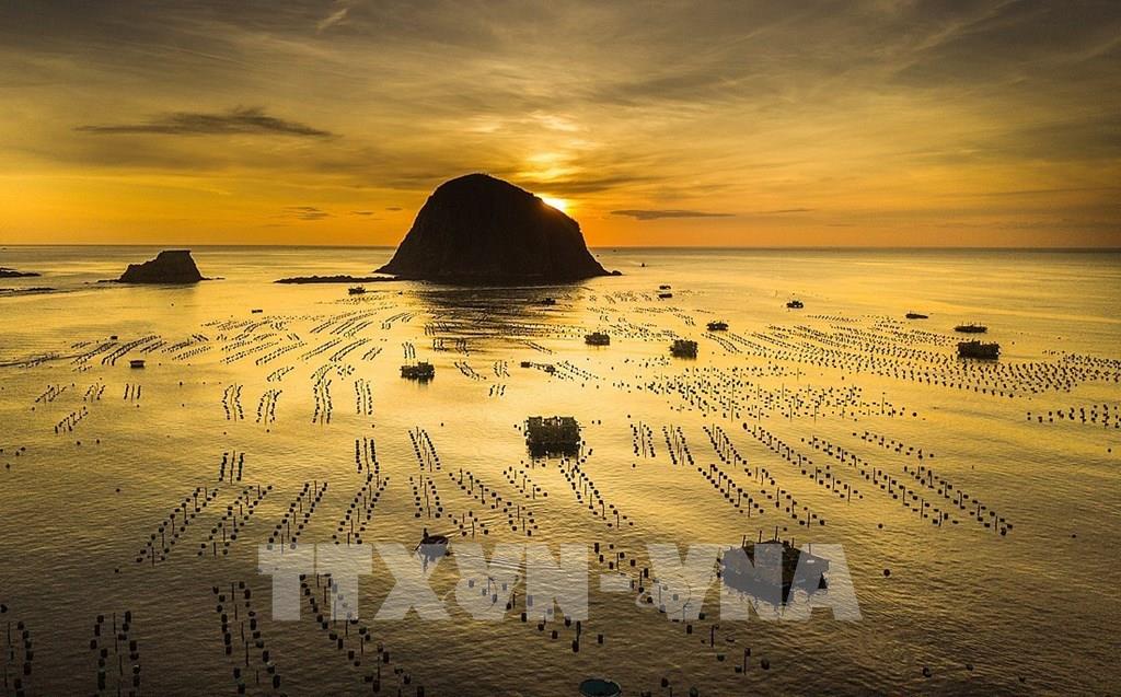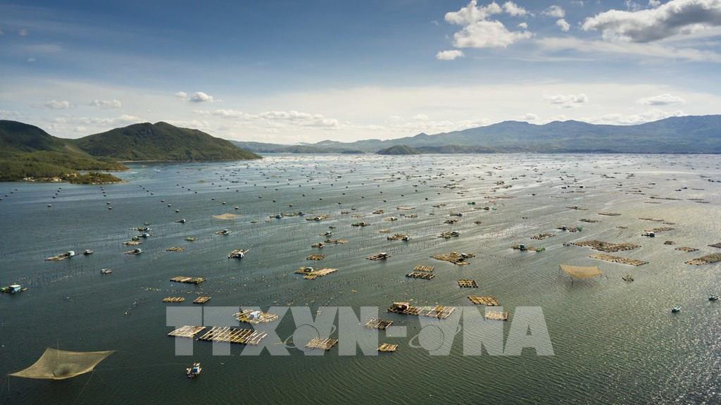 Phú Yên đã và đang đầu tư phát triển mạnh du lịch, đưa du lịch thành nền kinh tế quan trọng, hướng đến là ngành kinh tế mũi nhọn có đóng góp lớn cho kinh tế - xã hội địa phương; khai thác hiệu quả tiềm năng, lợi thế địa phương. Trong ảnh: Hệ thống lồng nuôi tôm hùm trên vịnh Xuân Đài, thị xã Sông Cầu. Ảnh: Trọng Đạt - TTXVN