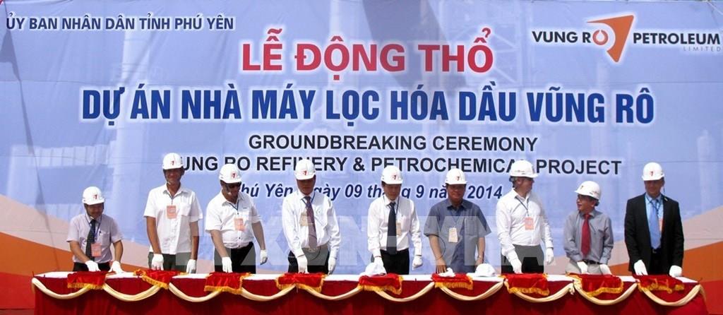 Phú Yên đã tận dụng được tiềm năng, lợi thế, thực hiện quyết liệt cải cách hành chính, cải thiện môi trường đầu tư kinh doanh thu hút đầu tư vươn lên mạnh mẽ. Trong ảnh: Đại diện lãnh đạo tỉnh và Công ty TNHH Dầu khí Vũng Rô bấm nút động thổ dự án. Ảnh: Bang Nhiêm-TTXVN