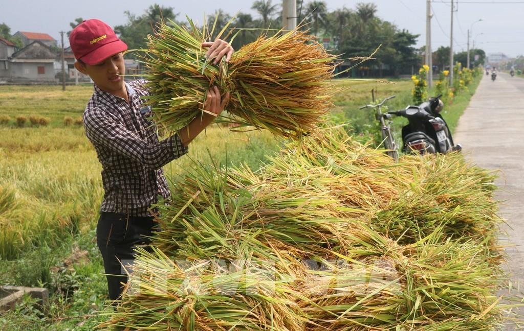 Tỷ trọng ngành Nông nghiệp chỉ còn chiếm 27,7% trong cơ cấu nền kinh tế của Phú Yên. Trong ảnh: Nông dân xã Hòa Trị, huyện Phú Hòa thu hoạch lúa Hè Thu. Ảnh: Phạm Cường-TTXVN