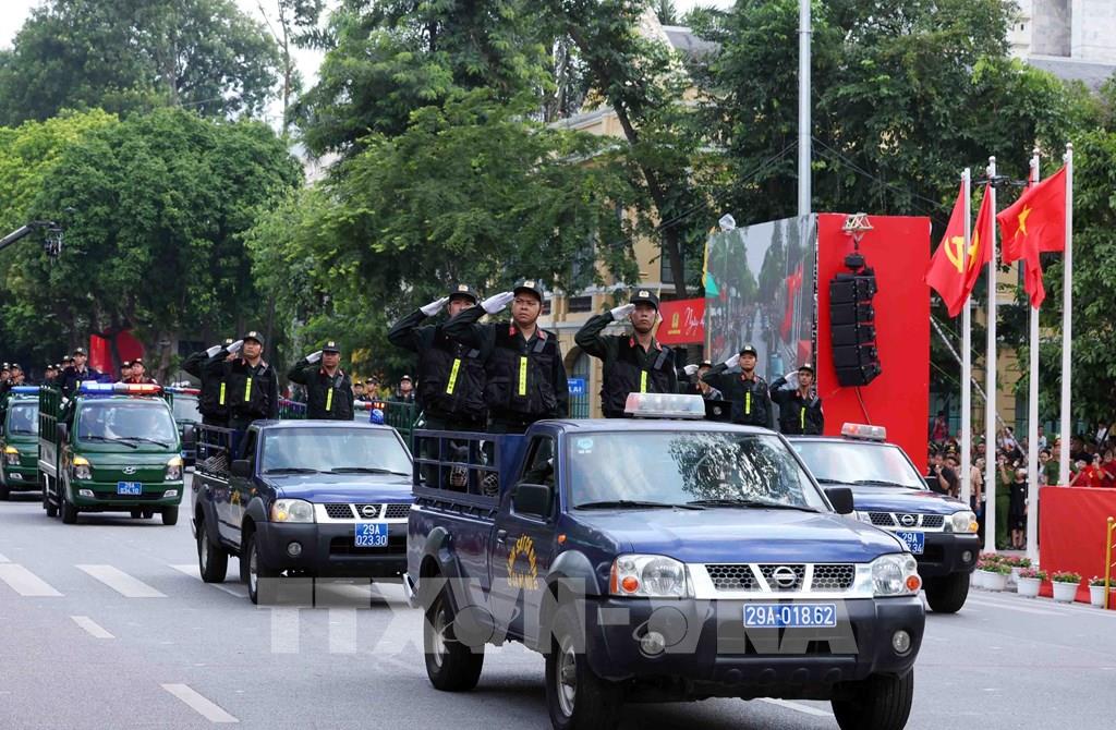 Màn diễu binh của khối An ninh Công an thành phố Hà Nội. Ảnh: Phạm Kiên - TTXVN