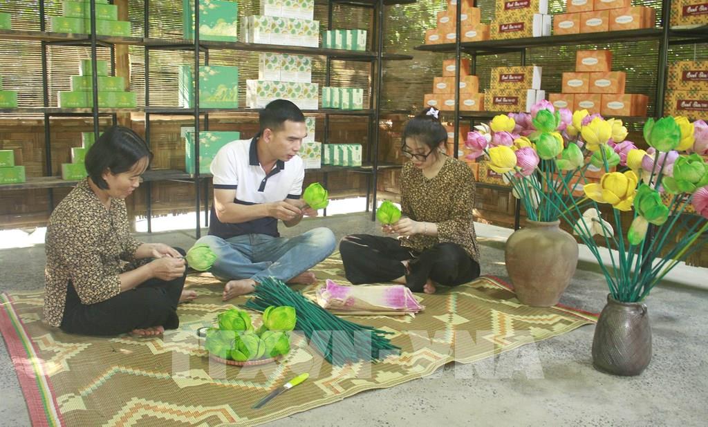 08:35' - 10/11/2023Anh Kiều Cao Dũng (Hà Nội) cùng với Công ty Cổ phần sản xuất, xuất nhập khẩu và thương mại dịch vụ Hali (Ninh Bình) đã thực hiện ý tưởng làm giấy từ những chiếc đài sen bỏ đi và sáng tạo ra nhiều sản phẩm mang đậm văn hóa Việt khác như: hoa sen giấy, quạt giấy... Các sản phẩm này đã xuất bán sang thị trường Mỹ, Nhật Bản. Anh Dũng đang tiếp tục nghiên cứu để cho ra thị trường những sản phẩm du lịch độc đáo được làm từ sen. Đây là hướng đi mới sẽ góp phần lưu giữ và phát triển giá trị di sản.