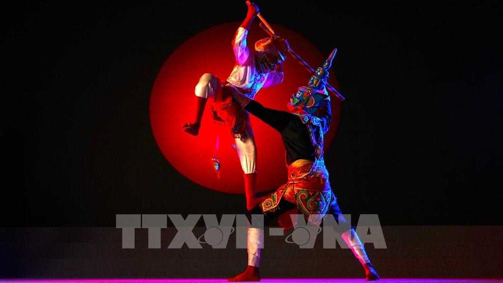 Tạo hình Khỉ thần Hanuman trong tiết mục múa Chằn. Ảnh: Minh Phú – TTXVN