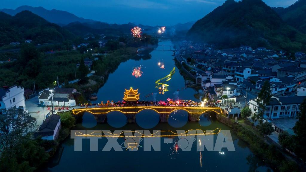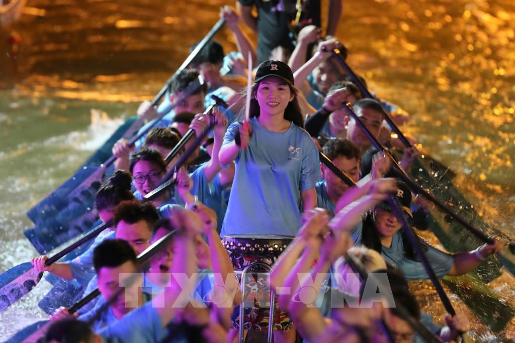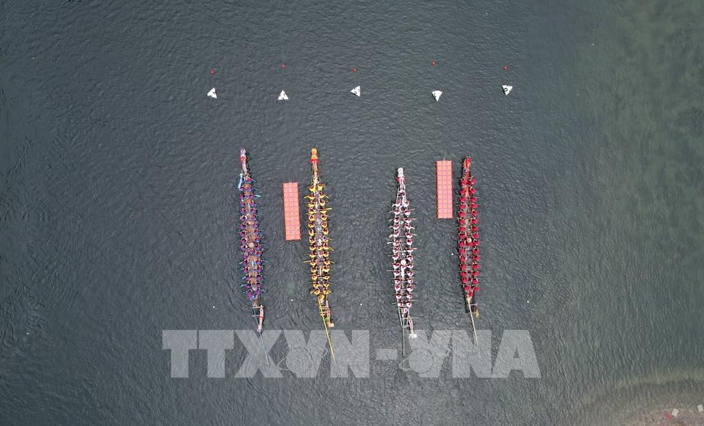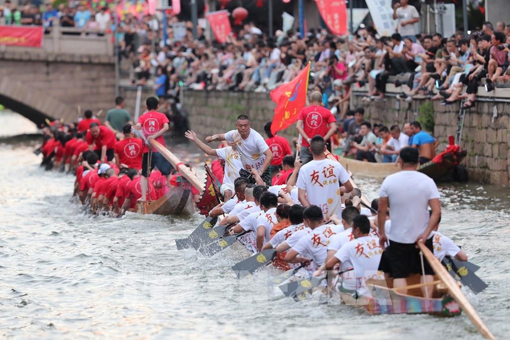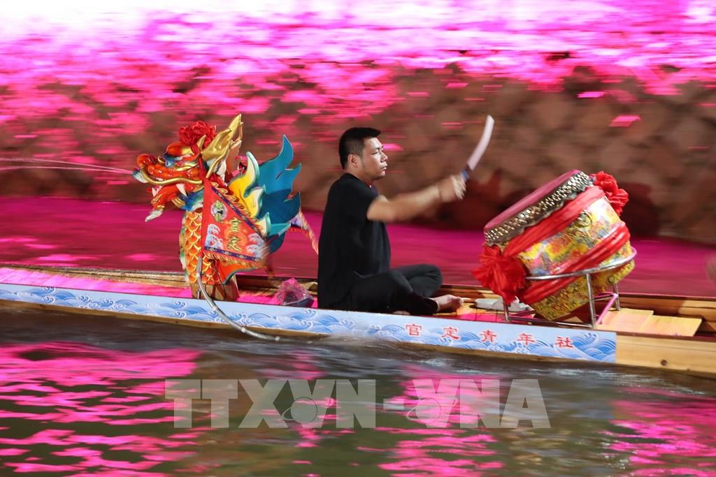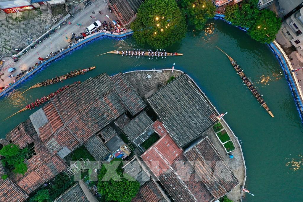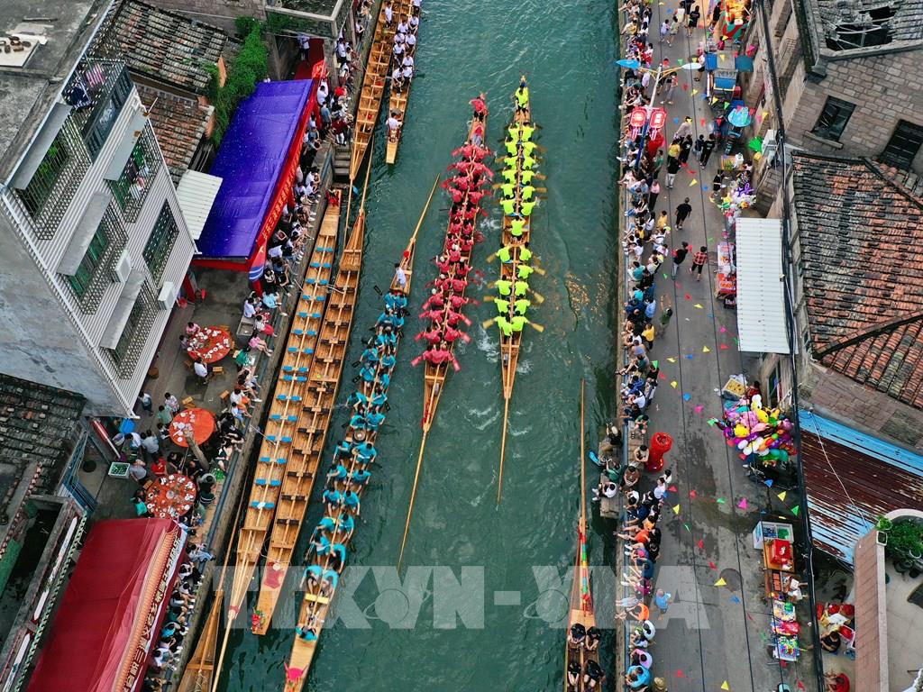 Hàng năm, cứ đến Tết Đoan Ngọ (5/5 âm lịch), người dân Trung Quốc lại tổ chức lễ hội Thuyền rồng trên khắp đất nước để cầu bình an và xua đuổi tà ma, bệnh tật... Điểm nổi bật của lễ hội là cuộc đua thuyền rồng trên sông.. Ảnh: THX/TTXVN