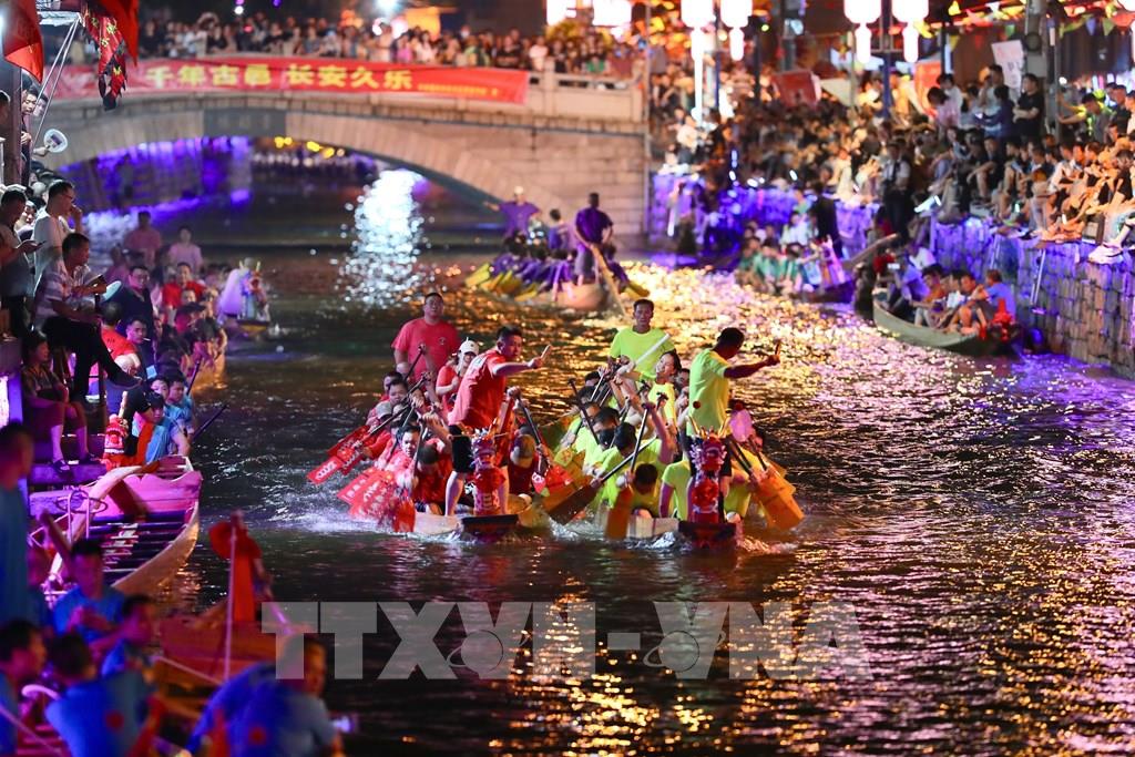 Hàng năm, cứ đến Tết Đoan Ngọ (5/5 âm lịch), người dân Trung Quốc lại tổ chức lễ hội Thuyền rồng trên khắp đất nước để cầu bình an và xua đuổi tà ma, bệnh tật... . Ảnh: THX/TTXVN